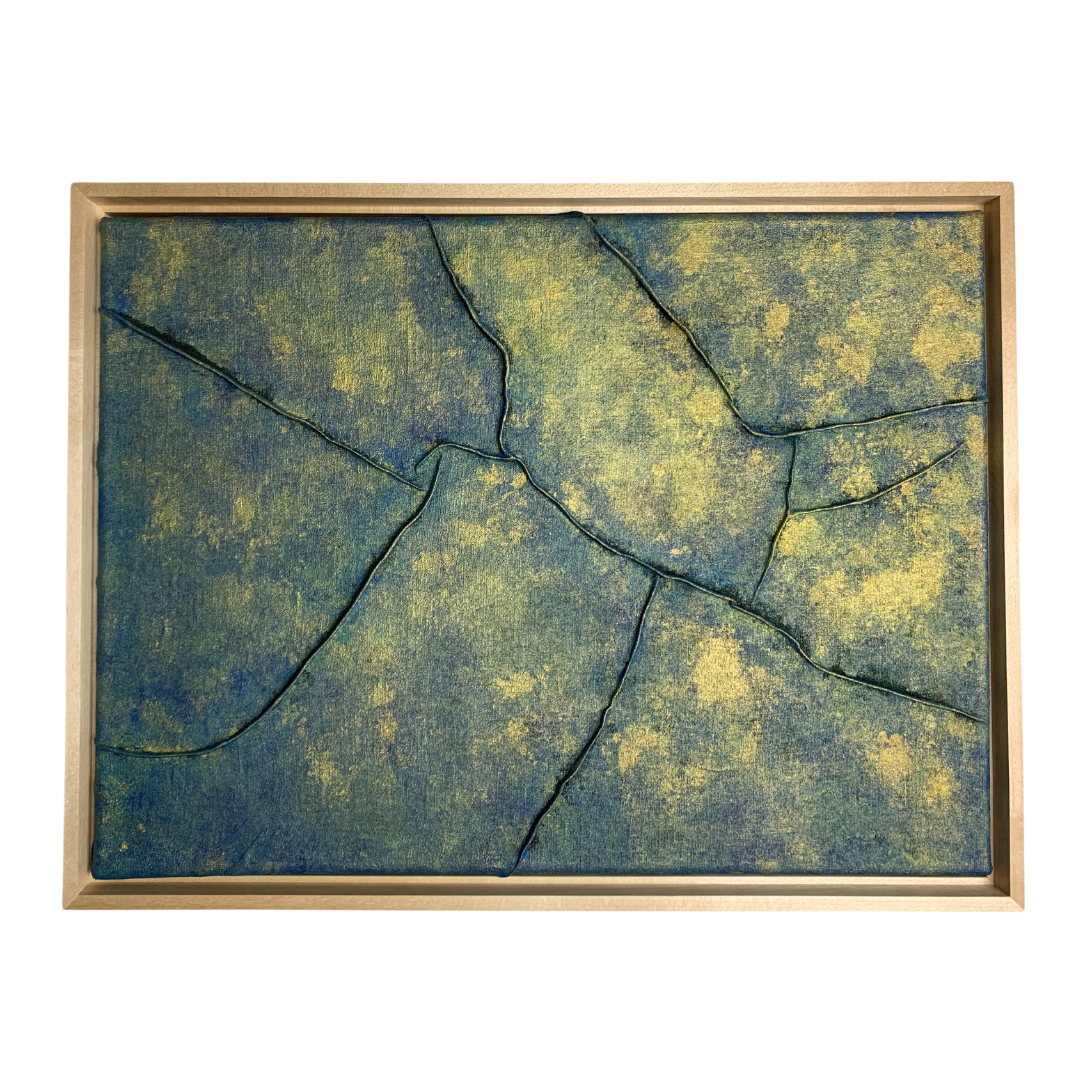 sculpted linen, hand dyed with snow, painted, pasted on canvas
