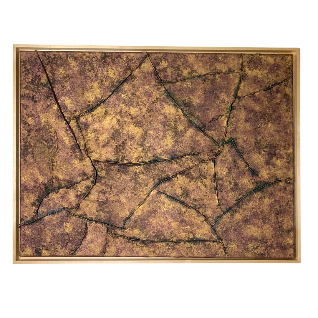 sculpted linen, hand dyed with snow, painted, pasted on canvas