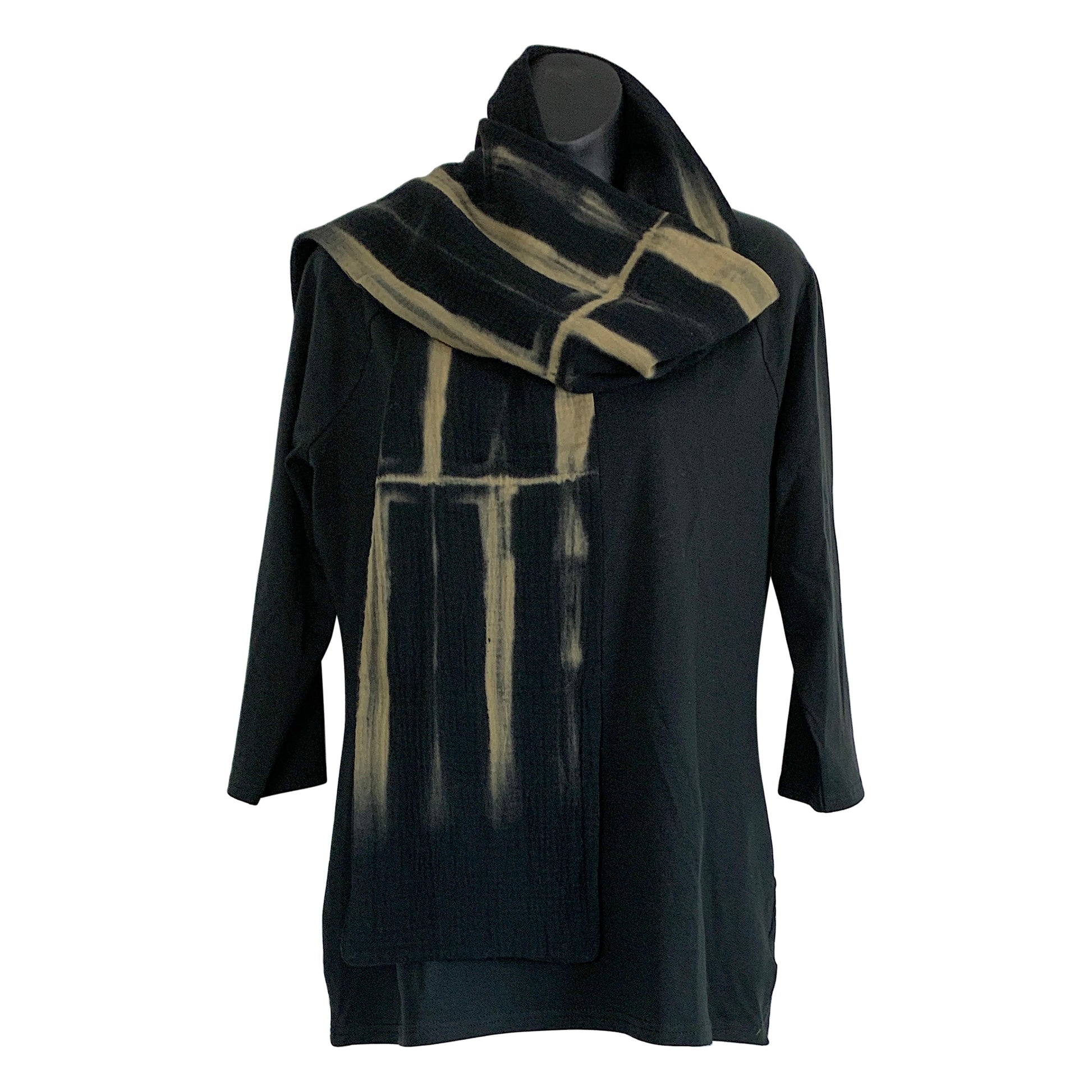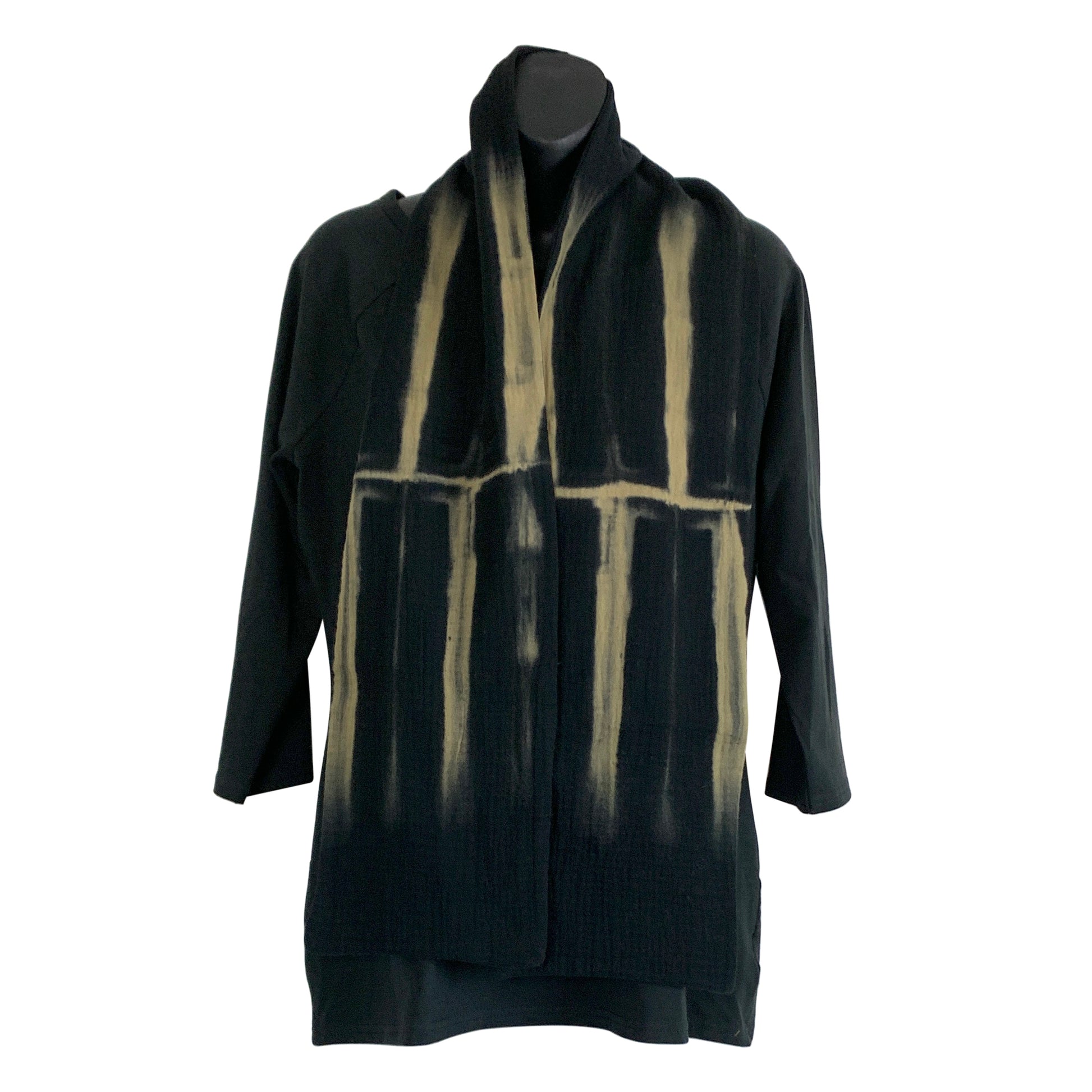 Beautiful, minimalist organic cotton scarf in reverse itajime shibori technique. Can be worn a variety of ways, in every season. One of a kind, each slightly different.