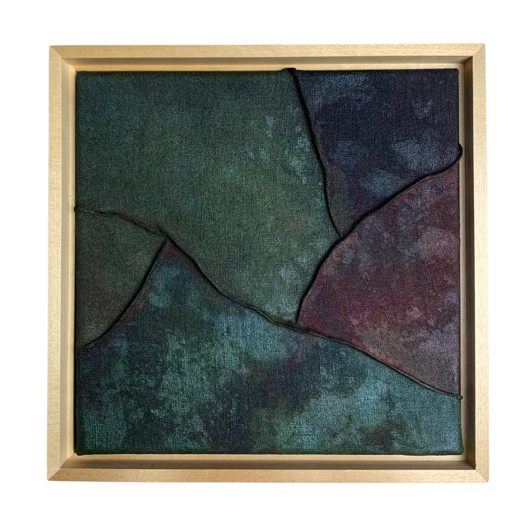 sculpted linen, hand dyed with snow, painted, pasted on canvas
